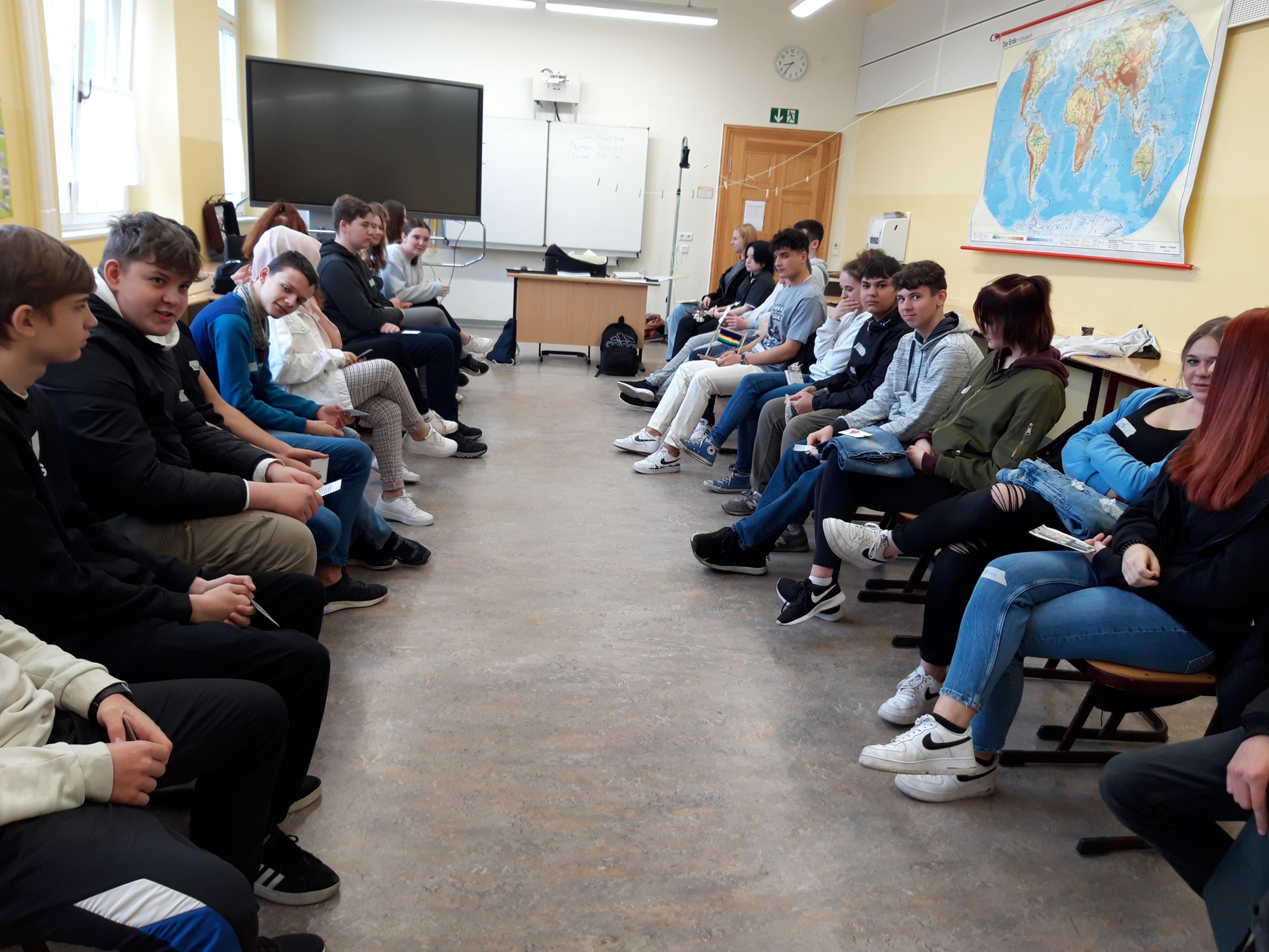 Nachdem am Montag bereits die Parallelklasse in den Genuss eines Geo-Projekttages kam, konnte unsere Klasse am Mittwoch, den 27.04.2022 endlich nachziehen. Die Veranstaltung wurde sehr abwechslungsreich von zwei jungen Damen des Görlitzer Tierra – Eine Welt e.V. gestaltet.