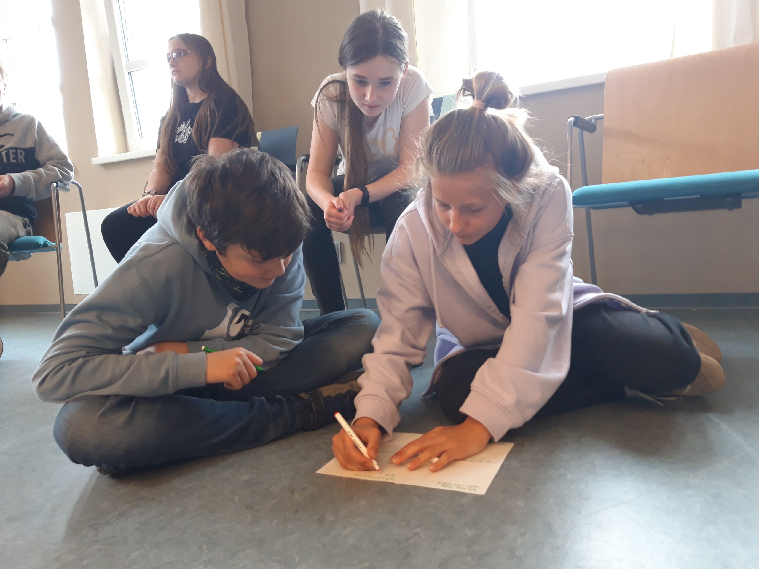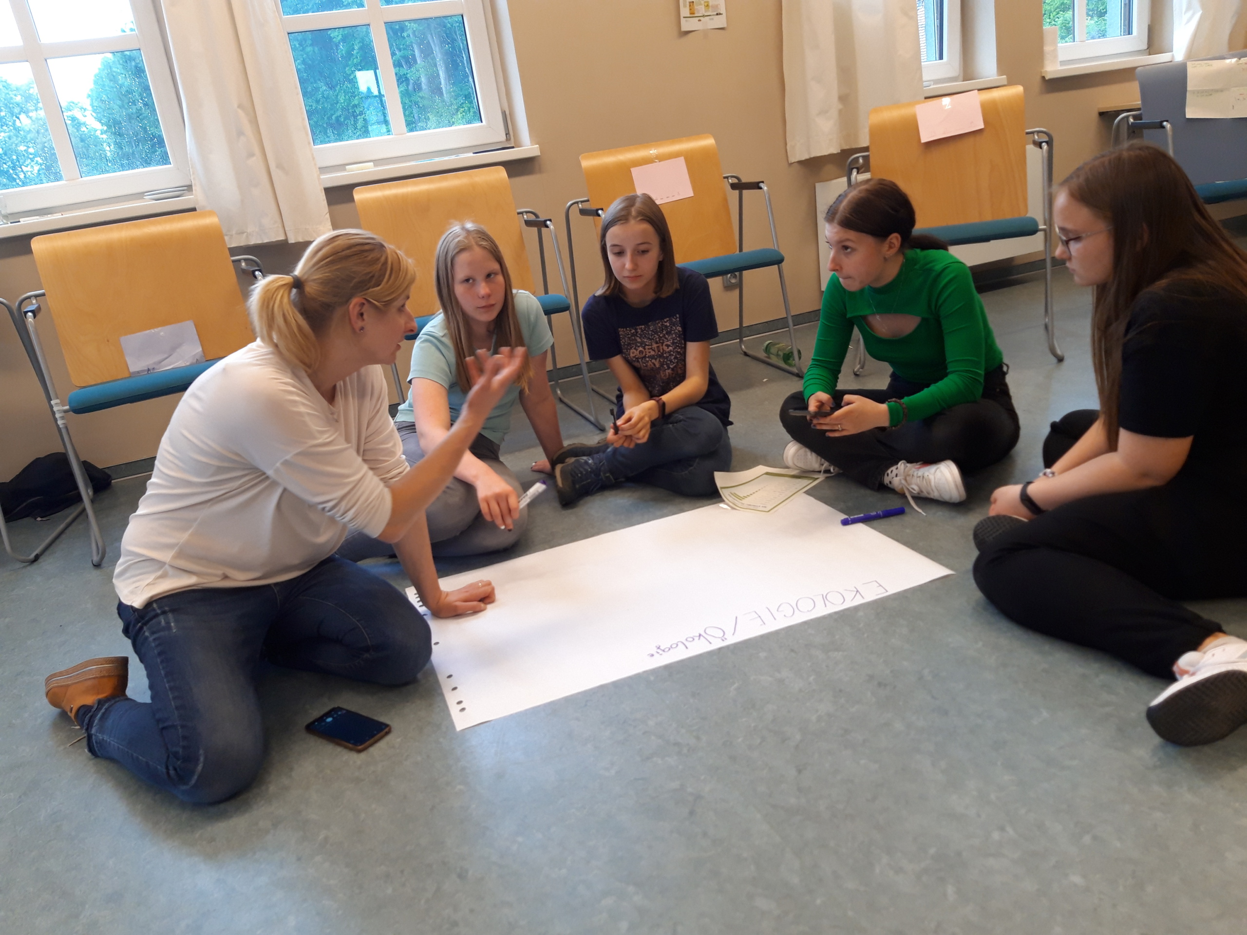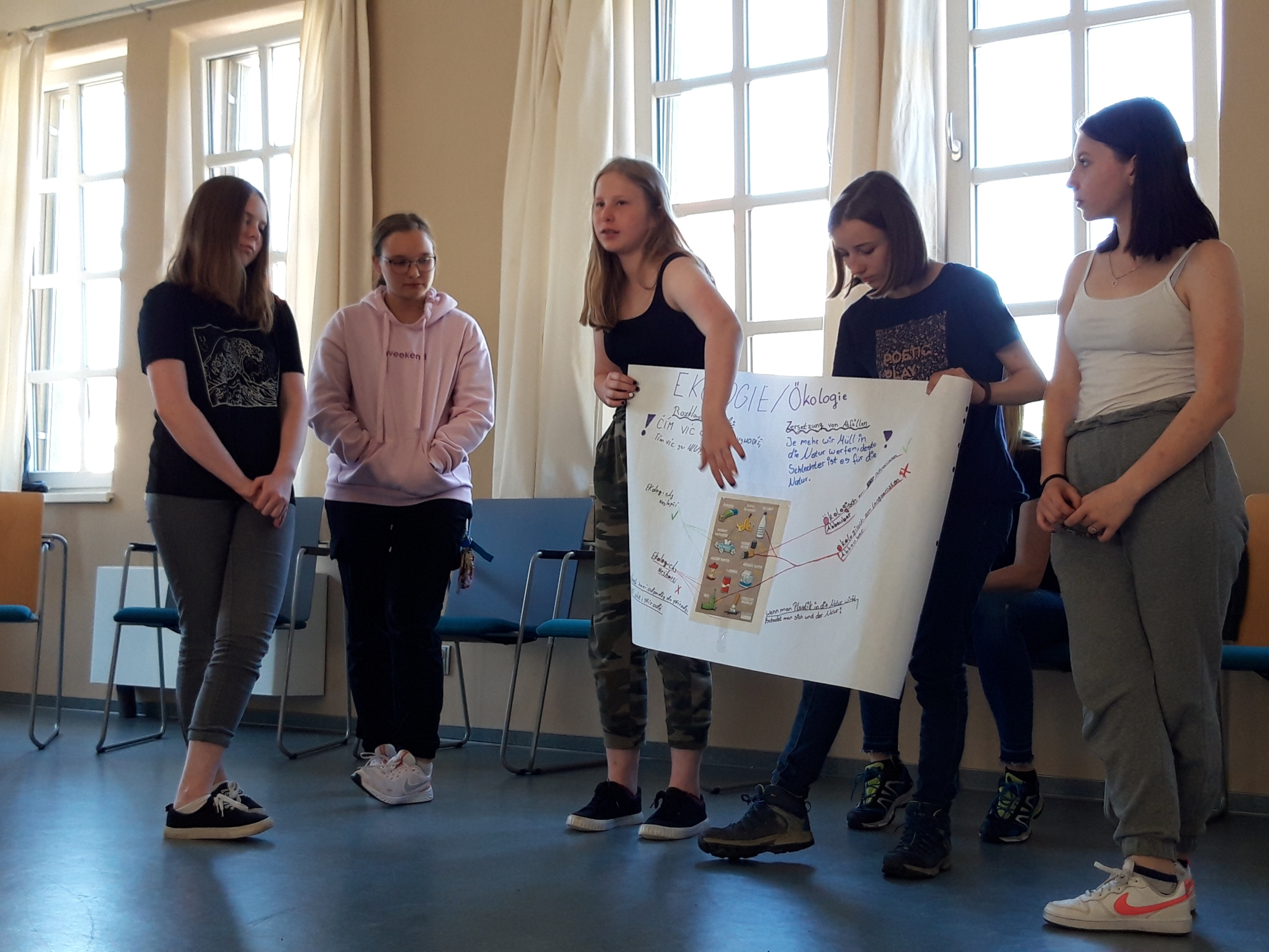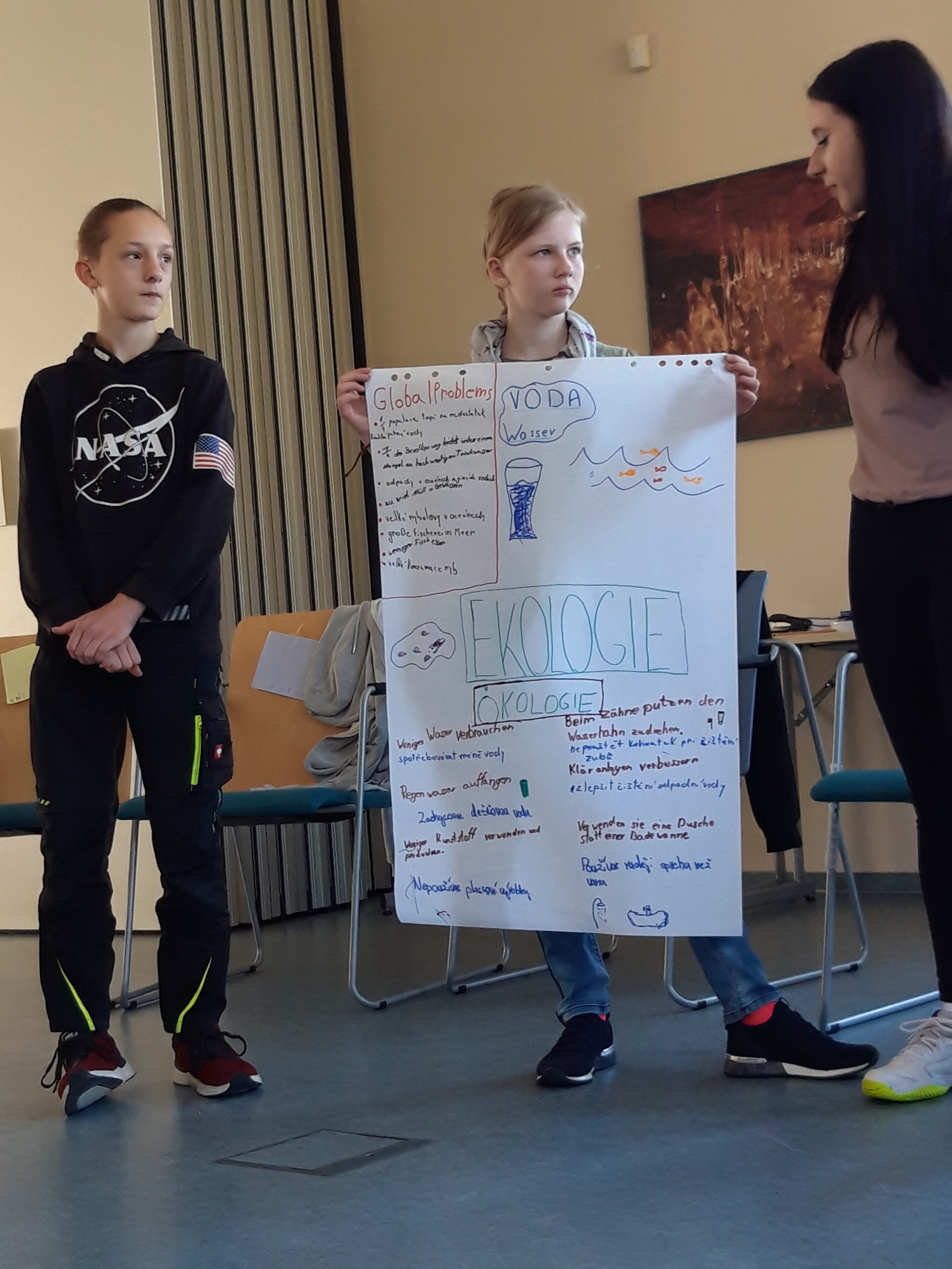 Organisiert von der Hillerschen Villa sowie České Švýcarsko und gefördert durch den Europäischen Fond für regionale Entwicklung machten sich unsere Schüler am Montag bei vielen kreativen Kennenlernspielen mit den zwölf Schülern aus Krásná Lípa bekannt. Da diese auch nur ein wenig Deutsch konnten, war die Verständigung anfangs gar nicht so leicht, aber Dank diverser Übersetzungsprogramme in den Handys konnte anschließend in Kleingruppen sogar gemeinsam über das Thema Ökologie nachgedacht werden. Dazu fertigten die Schüler und Schülerinnen Plakate an, die am nächsten Tag vorgestellt und ausgewertet wurden. So machten sich die Teilnehmer z.B. mit den Gemeinsamkeiten und Unterschieden in den Mülltrennungssystemen ihrer Länder vertraut.