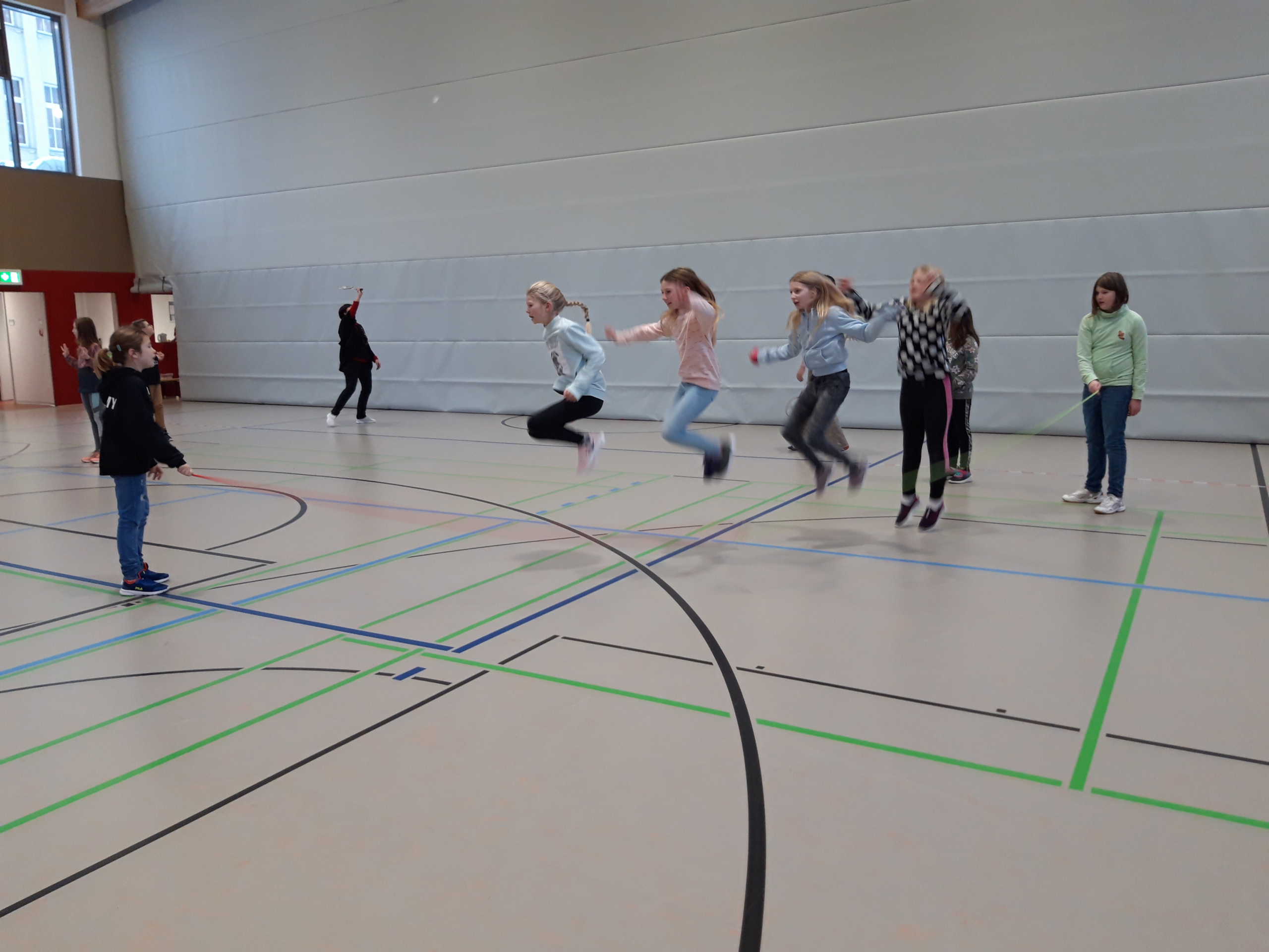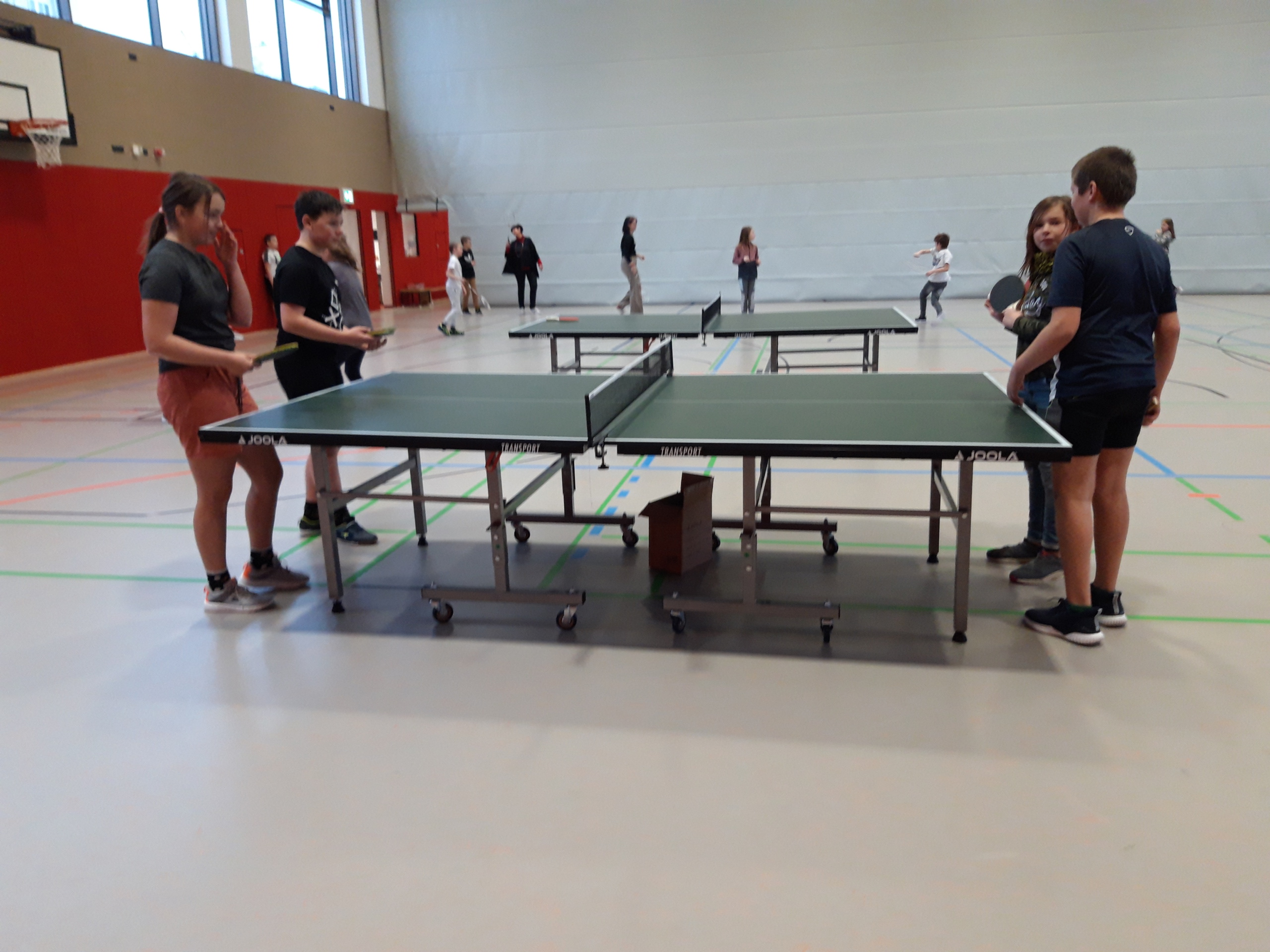 Trotz aller Emotionen blieb es aber stets fair und während die Mannschaften in der einen Hallenhälfte um Siege kämpften, konnten sich die spielfreien Schüler und Schülerinnen auf der anderen Seite in verschiedenen Sportarten ausprobieren. So wurde fleißig Tischtennis gespielt, die Federbälle durch die Halle getrieben und sich im Seilspringen überboten.