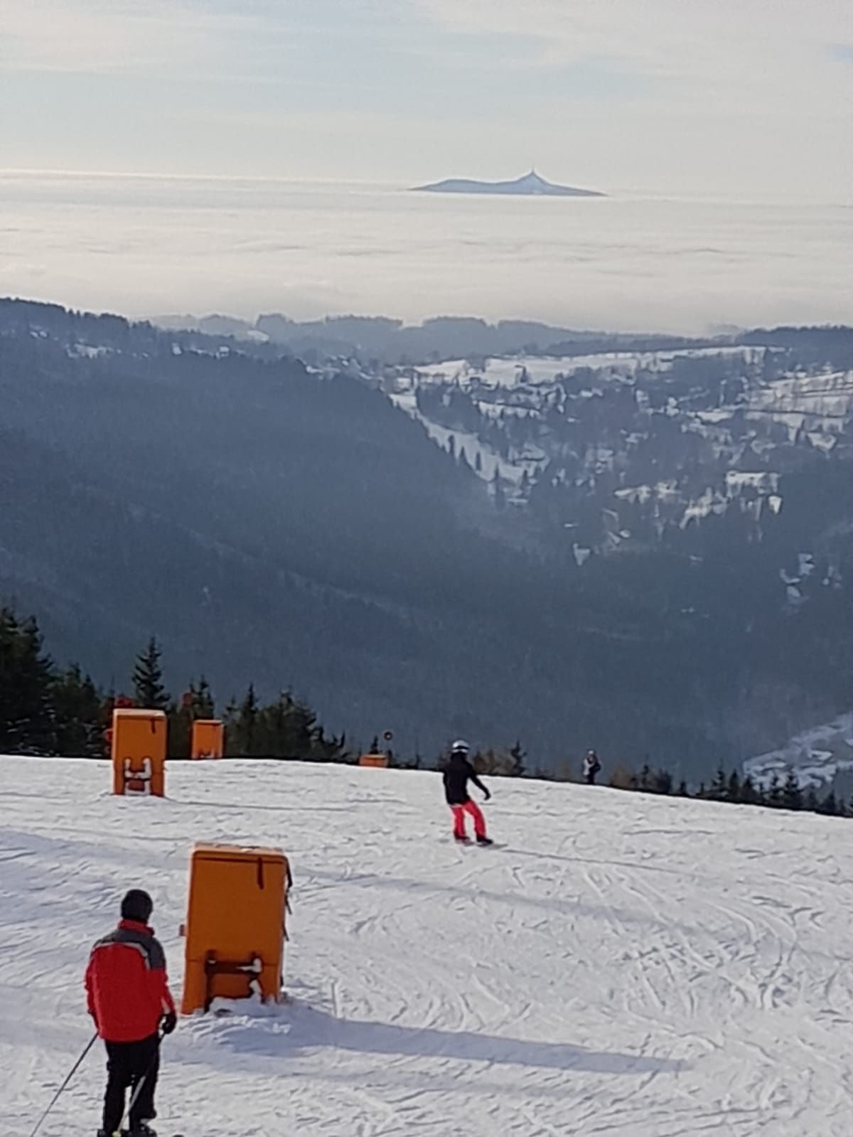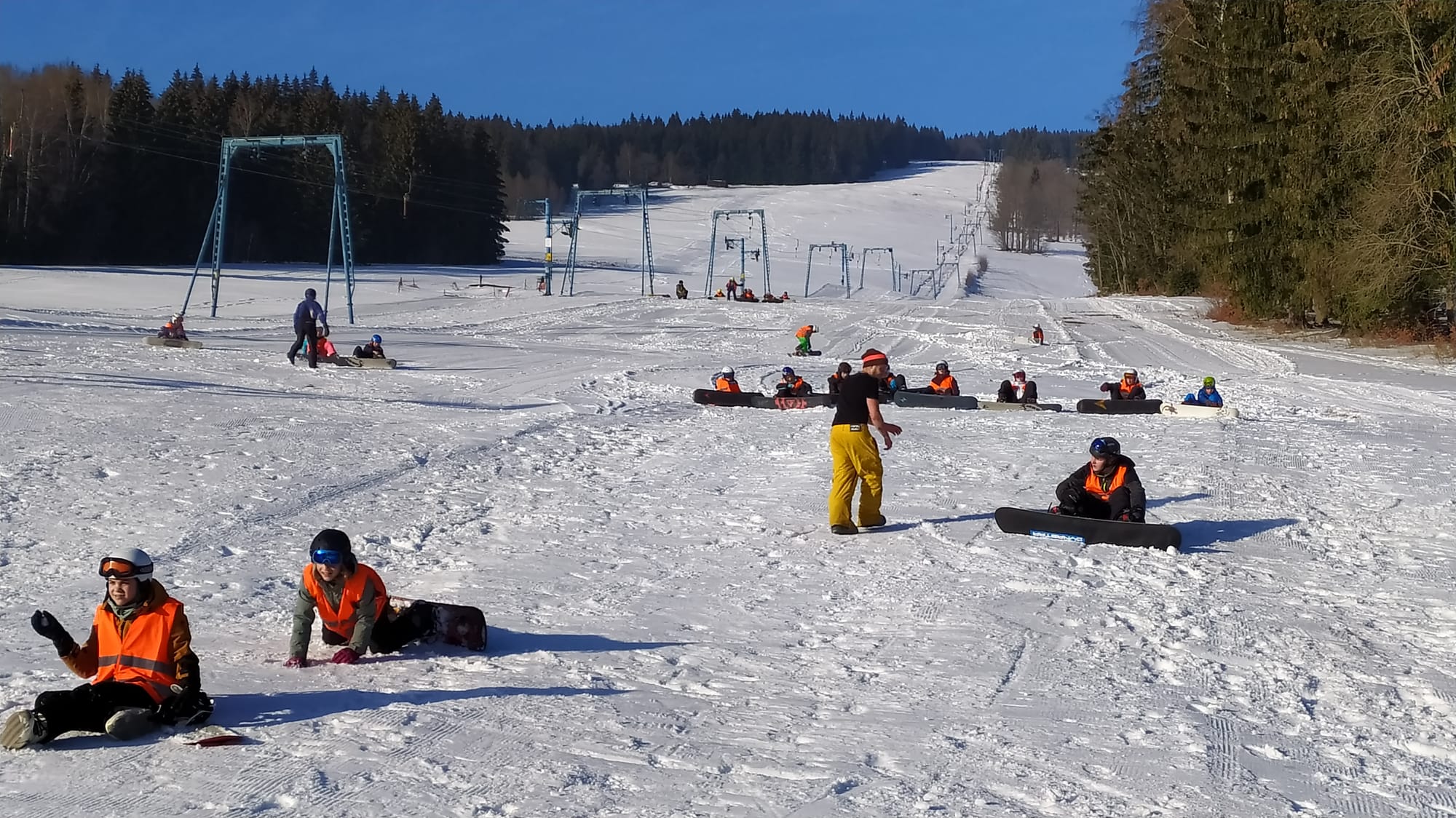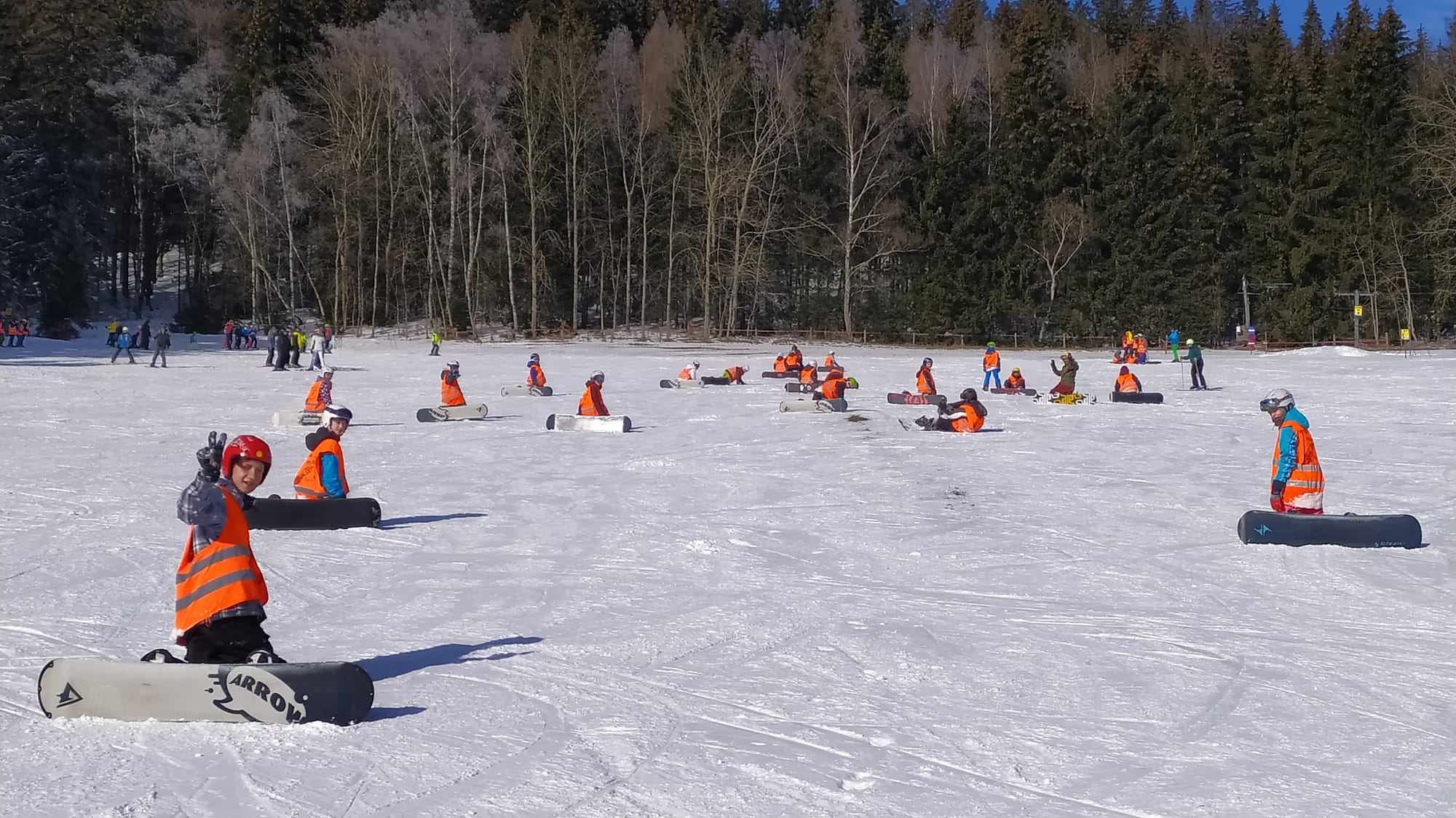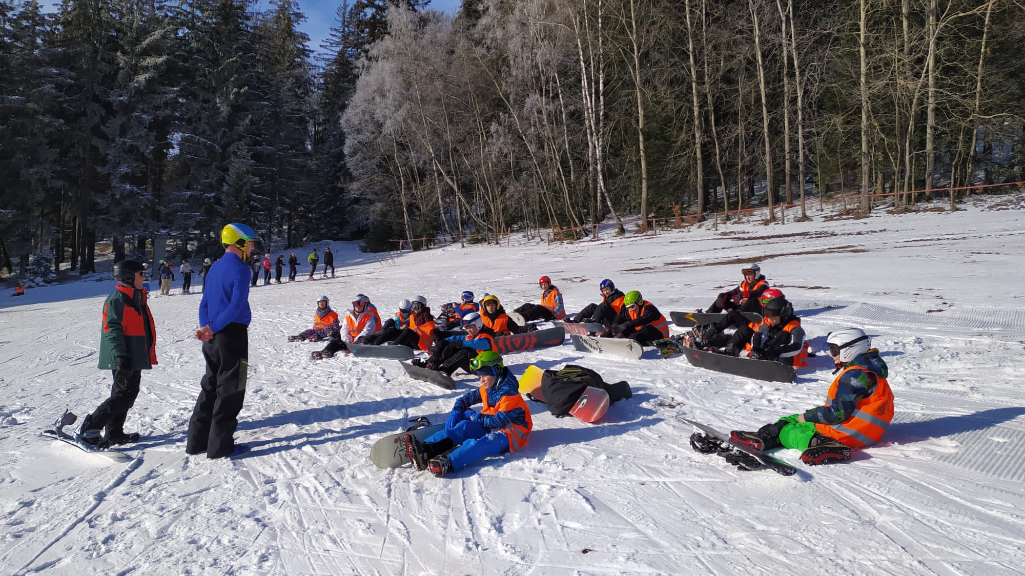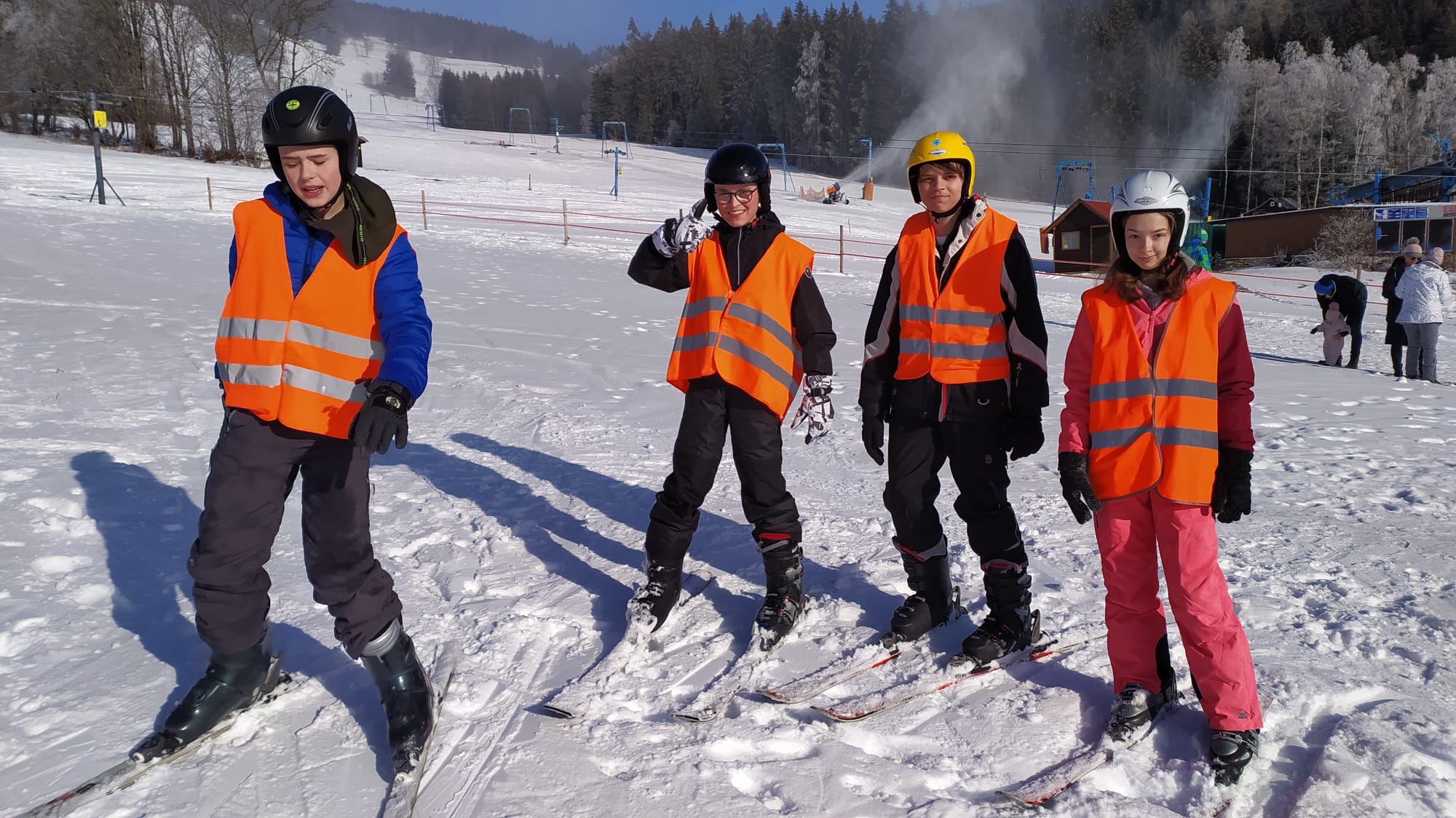 Am Sonntag kurz nach Mittag starteten wir am Bahnhof Zittau in Richtung Riesengebirge. Je näher wir unserem Ziel kamen, umso mehr schneite es. Der Weg von der Bushaltestelle in Rokitnice zum Jugendhotel „Roxana“ gestaltete sich als schneebedeckte Rutschbahn. Nach der Zimmerverteilung und dem Abendbrot wurden Skischuhe, Skier, Sturzhelme und Snowboards angepasst. Das zog sich den ganzen Abend hin, weil wir wirklich viele Skineulinge hatten. Nach der ersten aufregenden Nacht begann die Ski- und Snowboardausbildung in kleinen Gruppen mit netten und engagierten Lehrern. Das Wetter spielte mit und wir sahen Montag, Dienstag und Mittwoch die Sonne! Für einige Lernende stellte sich der Wintersport als sehr anstrengende und schmerzhafte Angelegenheit heraus. Doch einige wuchsen über sich hinaus und freuten sich über erste Erfolge auf Ski oder Board. Das machte auch hungrig! Die Verpflegung war lecker und reichlich, für jeden Geschmack war etwas dabei. In der Freizeit wurde Tischtennis gespielt oder die Geschäfte im Ort aufgesucht. Jeder konnte sich mit Spielen, Schwatzen oder Ausruhen die Zeit vertreiben. Auch neue Freundschaften wurden geschlossen, denn die Großschönauer Schüler wohnten in der 2. Etage und Skischule und die Freizeit wurden geteilt.