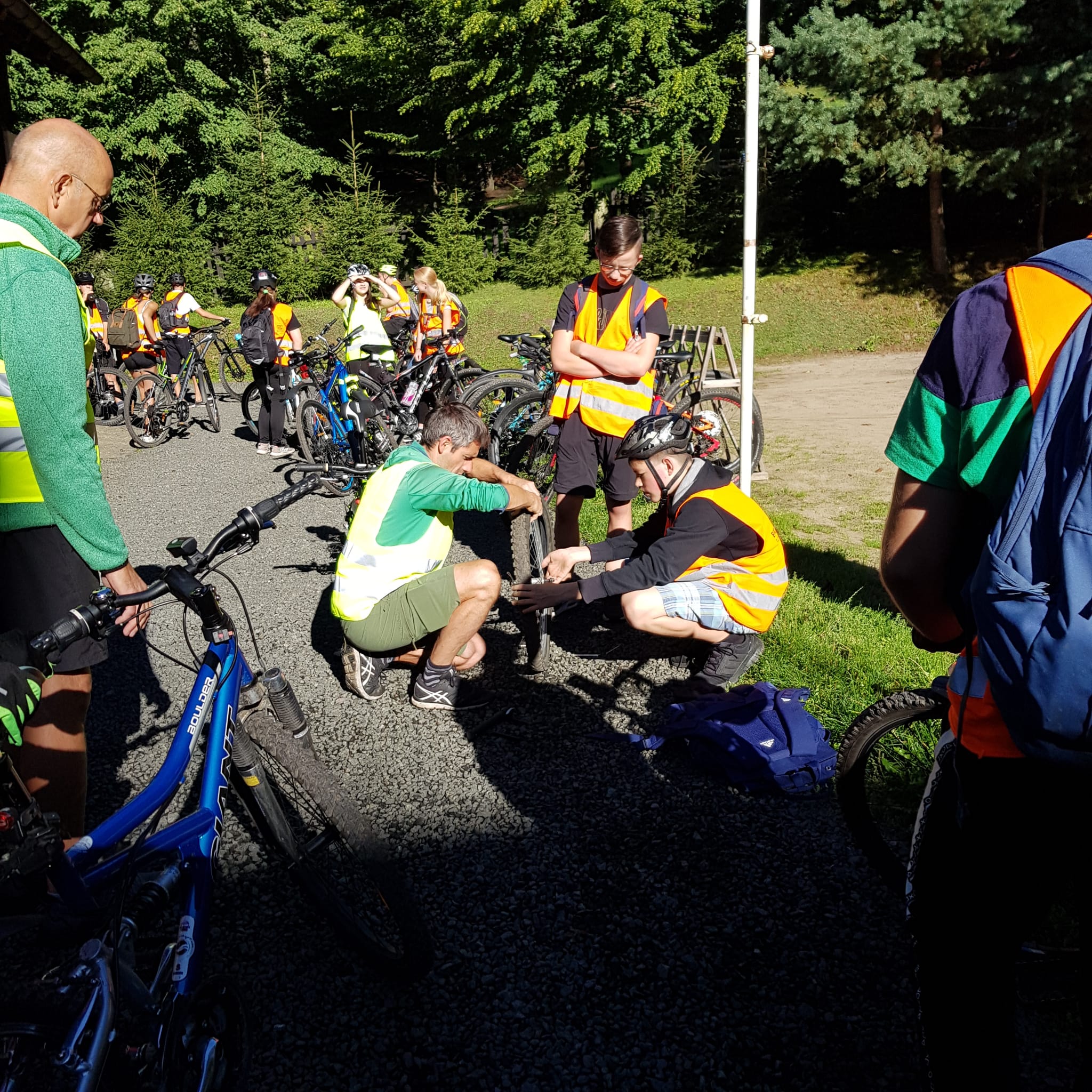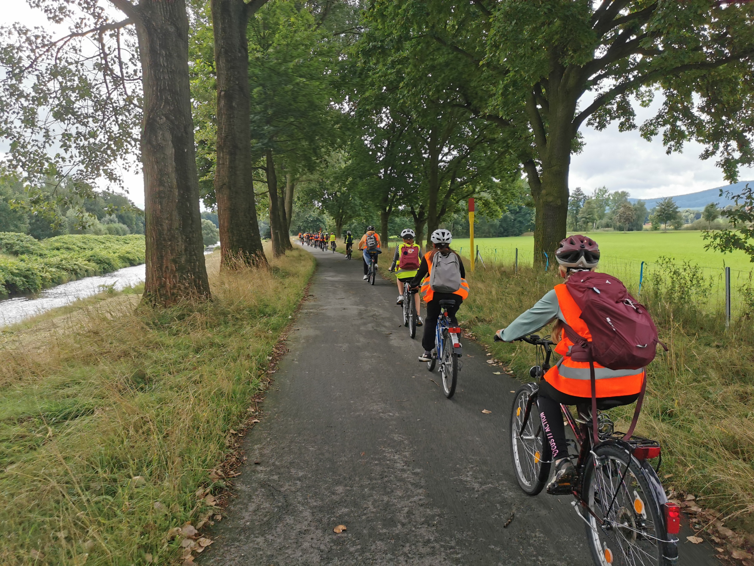 Wir möchten an dieser Stelle unseren herzlichen Dank an „JJ Bikes“ und den ehemaligen Schüler Maxe und ehemaligen Lehrer Herrn Heidrich richten, die vor der Abreise beim Fahrradcheck genau hingesehen und bei der Reparatur geholfen und uns bei der Hinfahrt mit ihrem technischen Verstand begleitet haben. Gleiches gilt für Herrn Eckelmann, der als Pannenhelfer und Motivator bei der Rückfahrt dabei war. Außerdem danken wir Frau Klatovska für ihre Hilfe bei der Organisation der Unterkunft, sowie der Klimaschulinitiative für die finanzielle Unterstützung und inhaltliche Neuausrichtung des Touristiklagers.