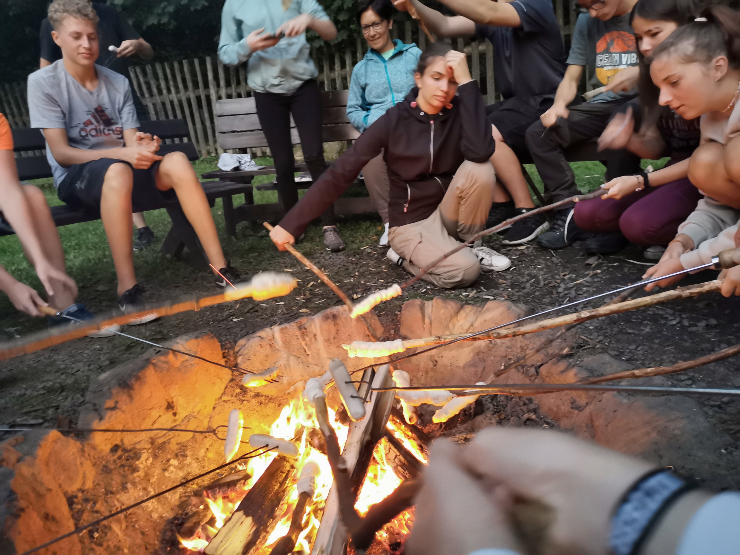 Gegen 17 Uhr erreichten wir dann unser Ziel mitten im Wald des Böhmischen Paradieses. Untergebracht waren wir in einer Selbstversorgerhütte in der Nähe des Schlosses Hruba Skala und so ging es nach dem Zimmerbeziehen in Kleingruppen ans Kochen in der Küche bzw. über dem offenen Lagerfeuer.