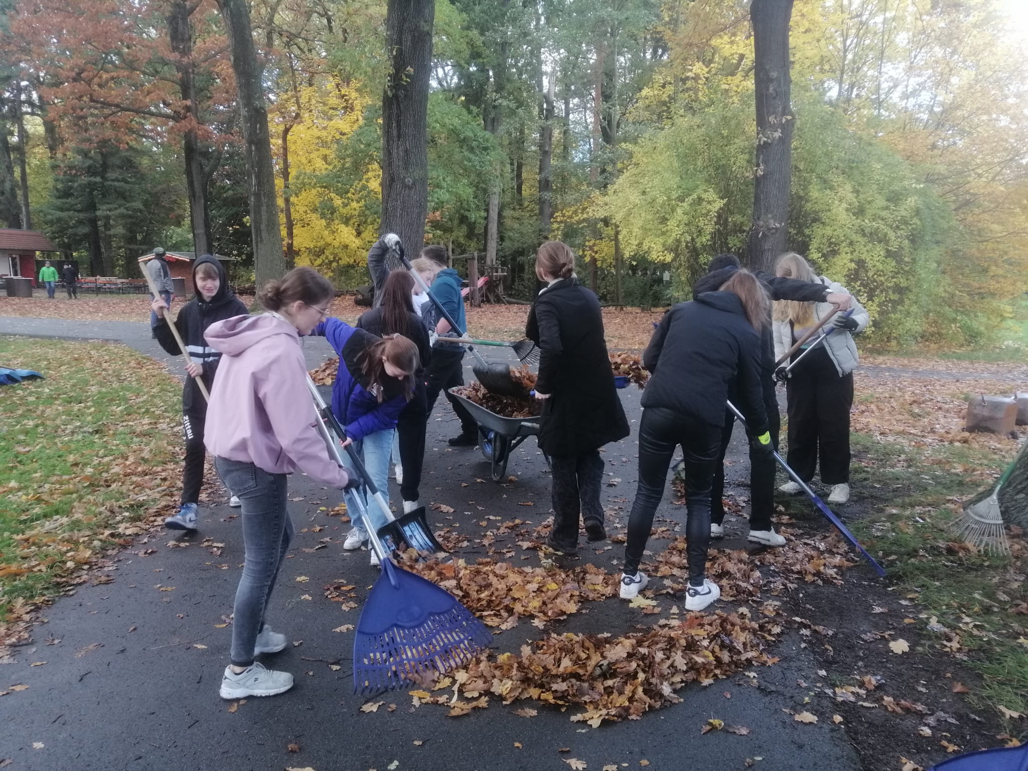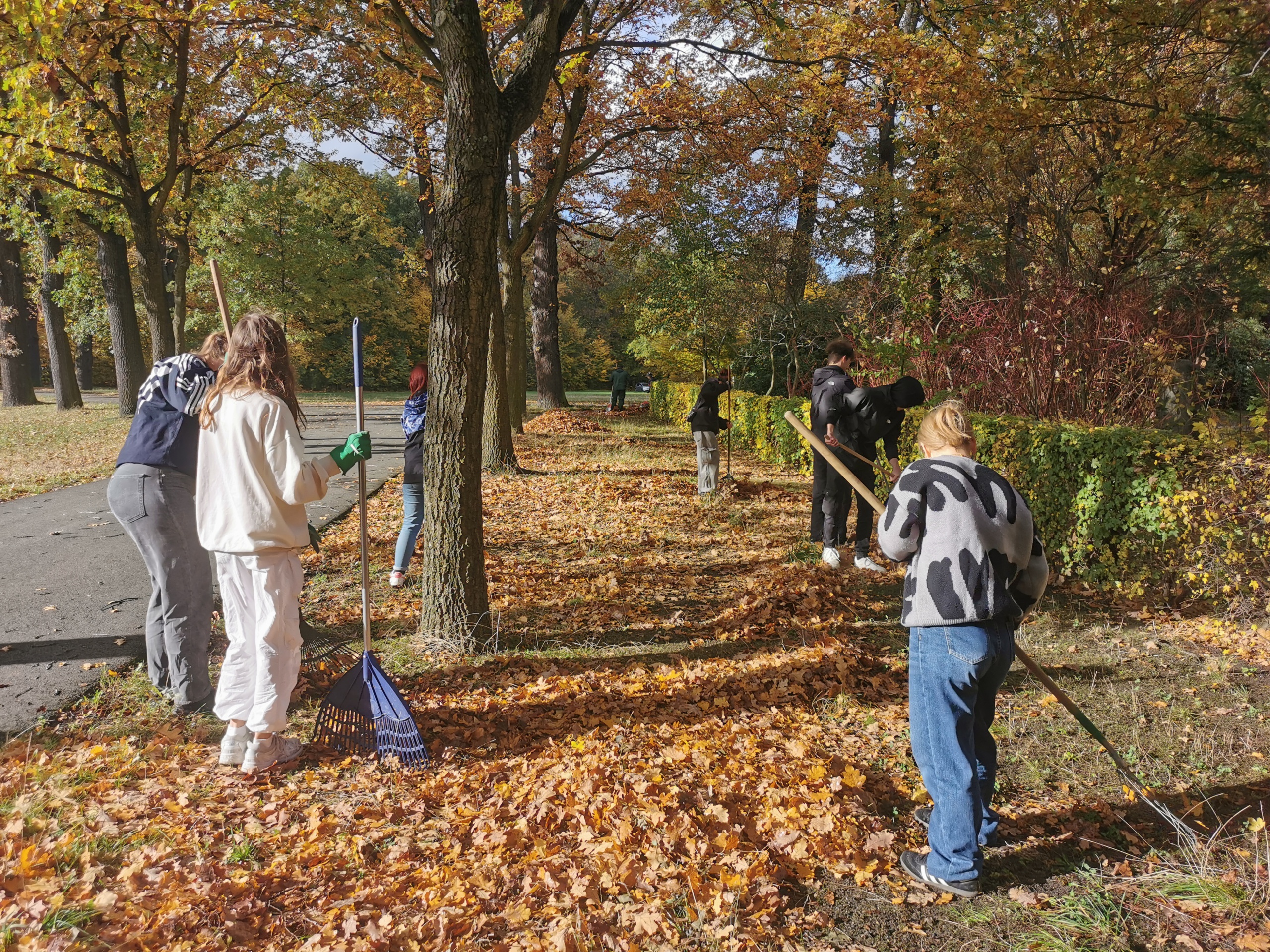 Am 4. November 2023 engagierten sich etwa 25 Zehntklässler und 6 Lehrer unserer Klimaschule aktiv beim traditionellen Herbstputz im Weinaupark. Die fleißigen Schüler widmeten sich dem Laubrechen und Müllsammeln, um einen Beitrag zur Sauberkeit und Pflege des nahegelegenen Weinauparks zu leisten. Die Aktion wurde in Zusammenarbeit mit dem Weinauverein organisiert. Damit leisteten die Teilnehmer einen wichtigen Beitrag zum Umweltschutz und für die Gemeinschaft.