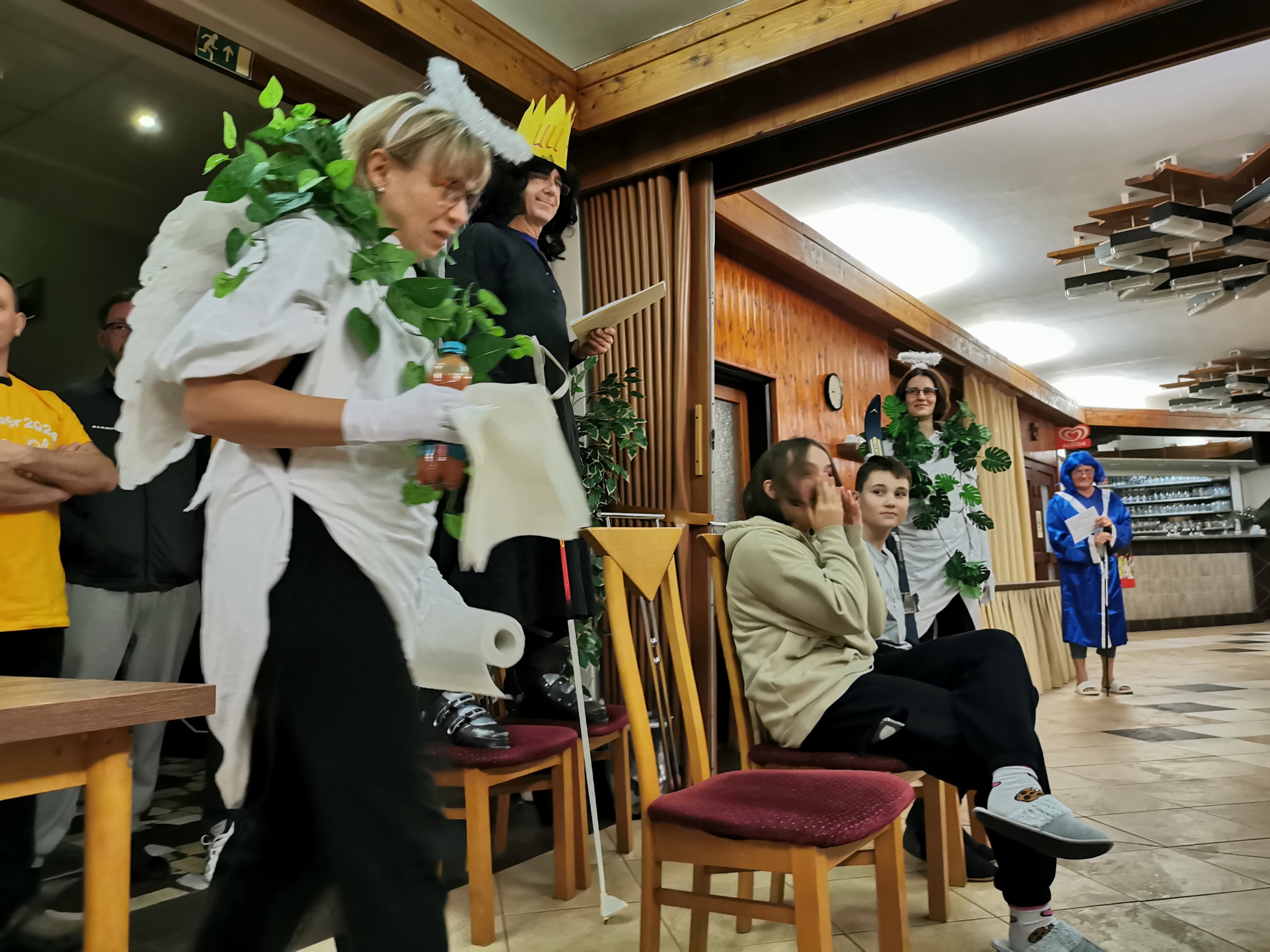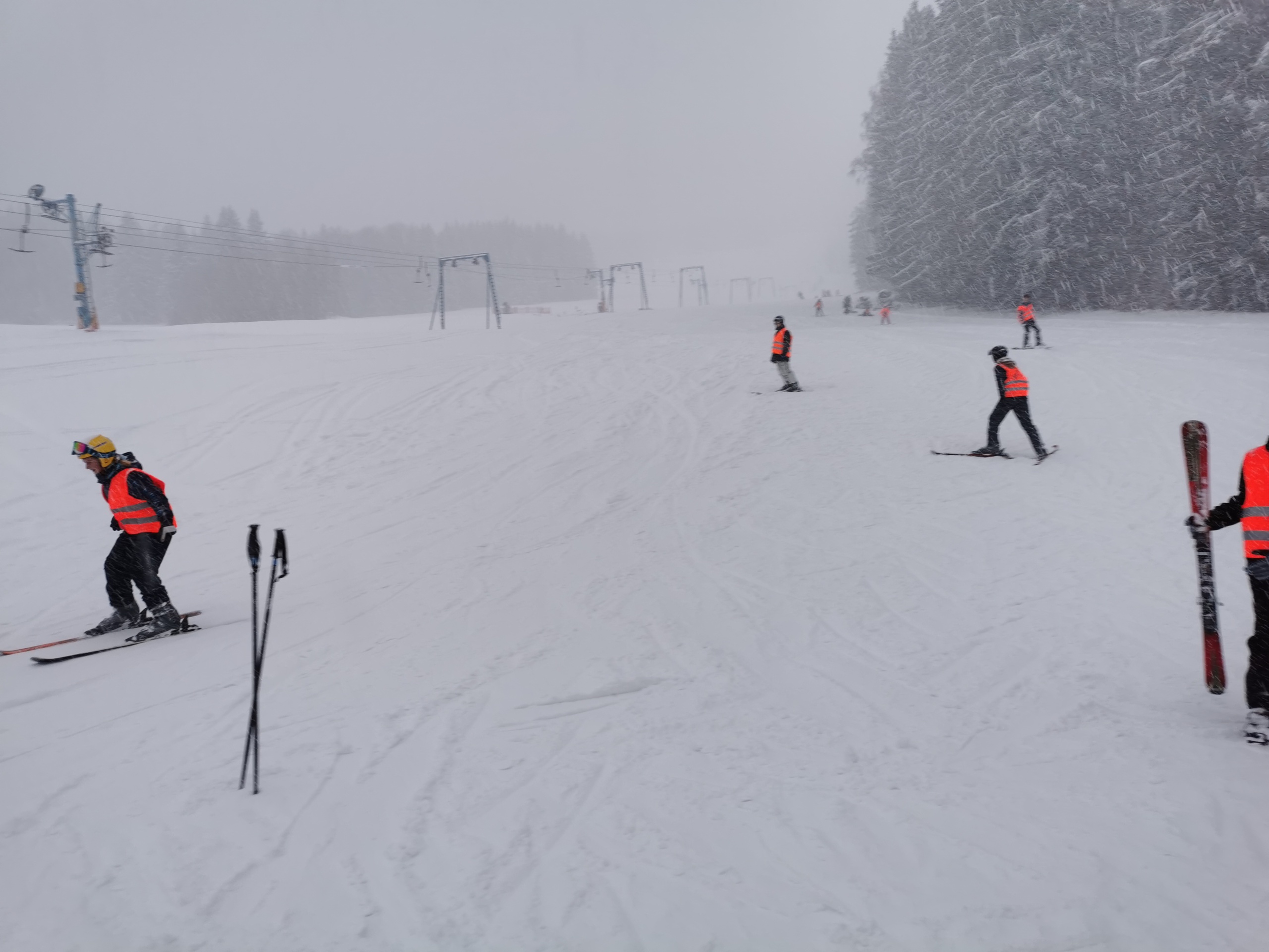 Am Donnerstagvormittag wurden die erworbenen Fähigkeiten in praktischen Prüfungen am Hang unter Beweis gestellt. Am Nachmittag sorgte ein Schneegestöber für eine besondere Atmosphäre beim Skifasching, gefolgt von freiem Fahren auf den Pisten. Der Abend stand ganz im Zeichen der Skitaufe, bei der die größten Hanghühner, Bruchpiloten und Pistenschnecken gebührend gefeiert wurden.
