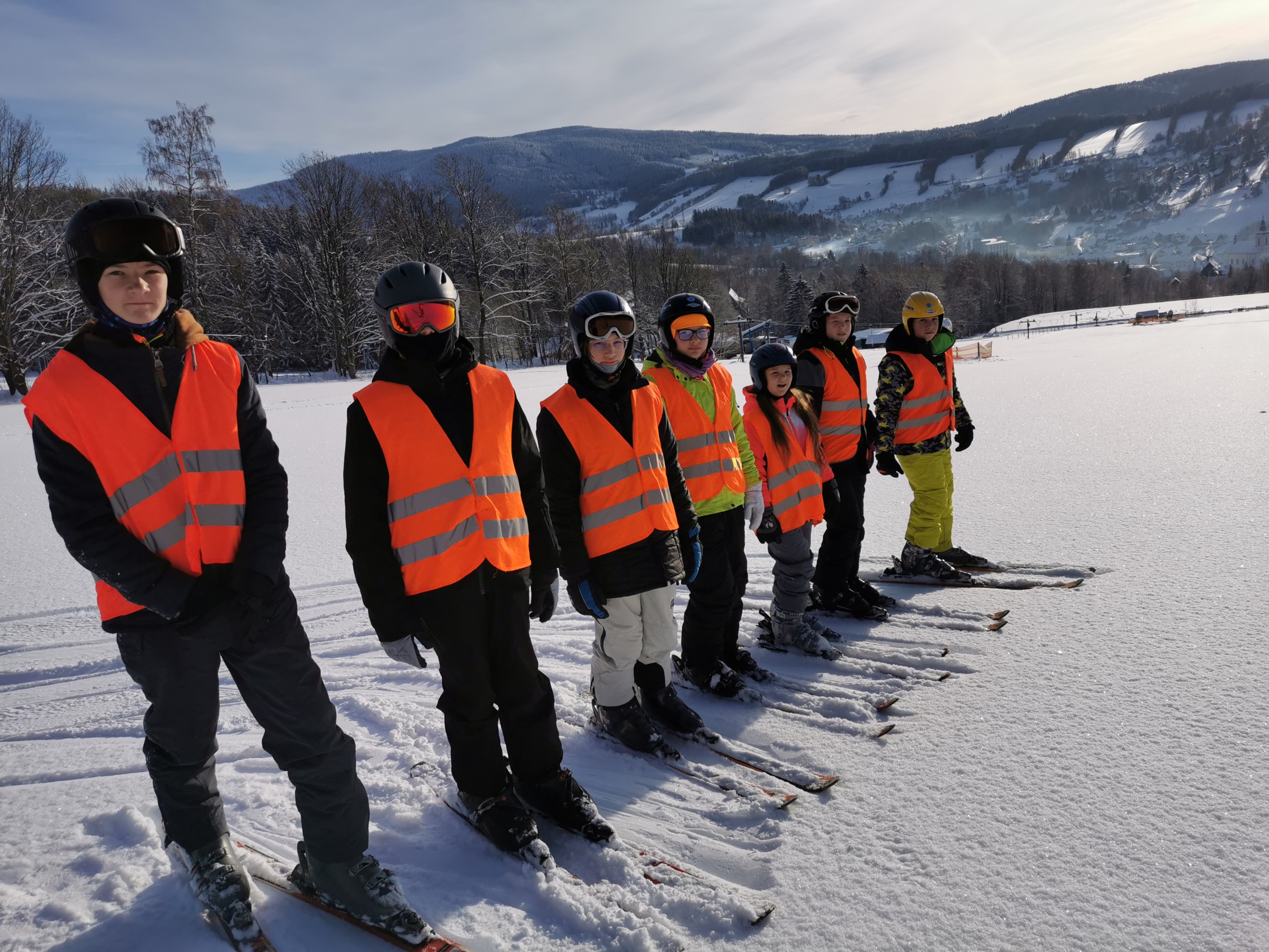 Die Unterkunft, direkt an der Piste gelegen, bot auch dieses Jahr wieder nicht nur eine beeindruckende Aussicht, sondern auch eine leckere Vollpension mit traditioneller tschechischer Küche. Schon am Sonntag konnten die Schülerinnen und Schüler ihre Skiausrüstung ausleihen, um sich dann von Montag bis Mittwoch in kleinen Fortgeschrittenen- und Anfängergruppen den Herausforderungen der Pisten zu stellen. Die gemeinsamen Ski- und Snowboardkurse schweißten die Schülerinnen und Schüler aus beiden Schulen zusammen. So entstanden während der Woche neue Freundschaften inmitten des schneebedeckten Riesengebirges, und die Begeisterung für den Wintersport wuchs von Tag zu Tag.