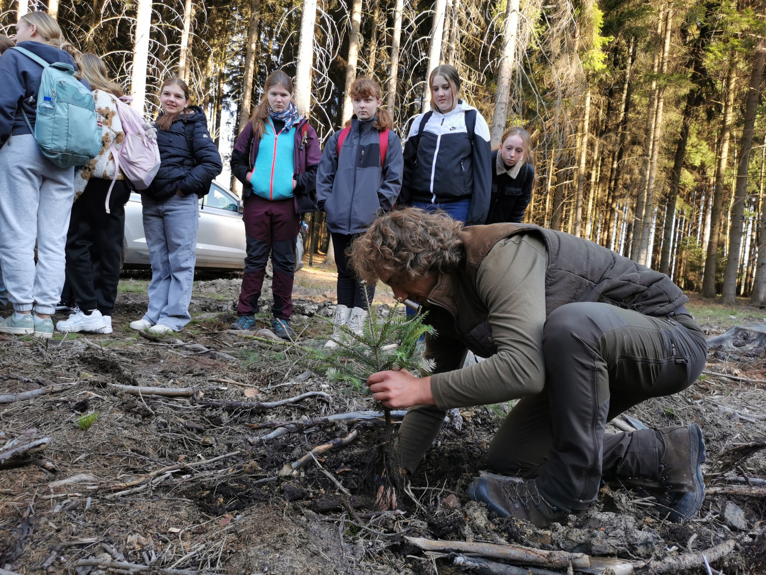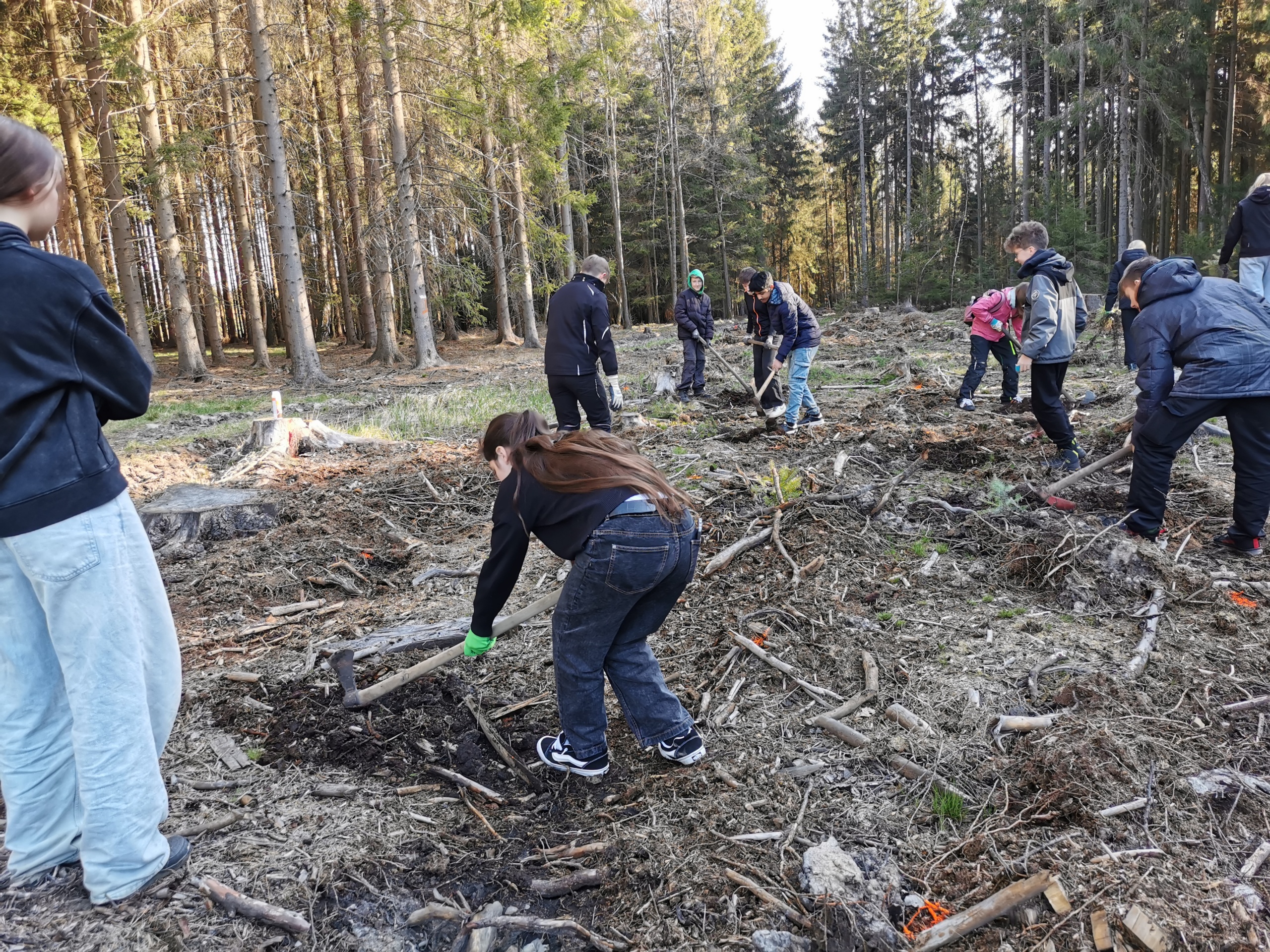 Am 09. April 2025 nahmen unsere 7. Klassen im Rahmen der Klimaschulinitiative an einer besonderen Ausgleichsmaßnahme für das diesjährige Skilager teil: einer Baumpflanzaktion im tschechischen Rumburk, organisiert in Kooperation mit Lesy ČR, der tschechischen Forstverwaltung.